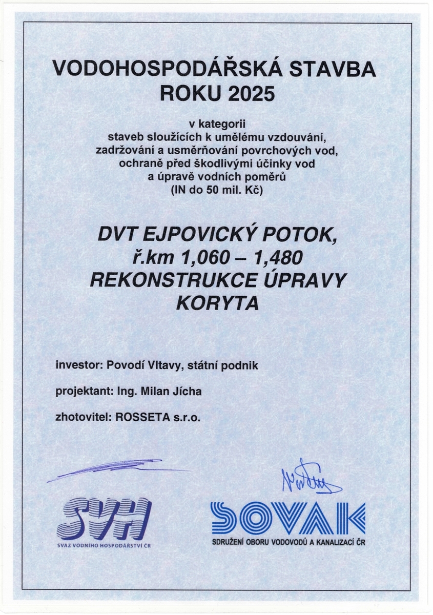 Spoločnosť ROSSETA s.r.o. sa zaoberá stavebnými, výkopovými a zemnými prácami, ktoré sú prevažne vodohospodárskeho charakteru. Medzi naše hlavné služby patrí odbahňovanie rybníkov, oprava rybničných objektov, výstavba bezpečnostných prelivov, kamenných stien, vypúšťacích objektov, rekultivácia skládok, čistenie a úprava vodných tokov a regulácia tokov.